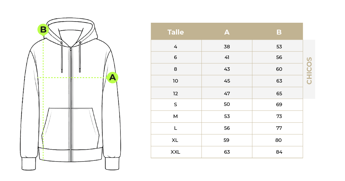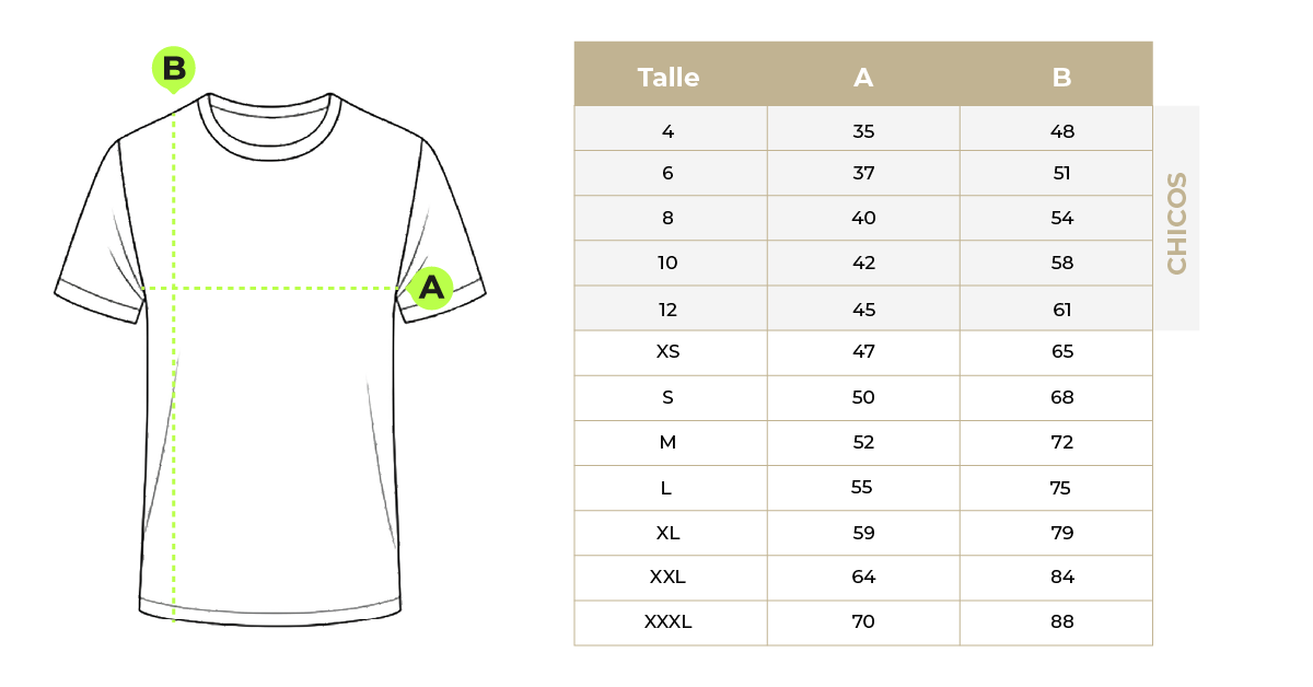 Si estás entre dos talles, te recomendamos elegir el más grande.